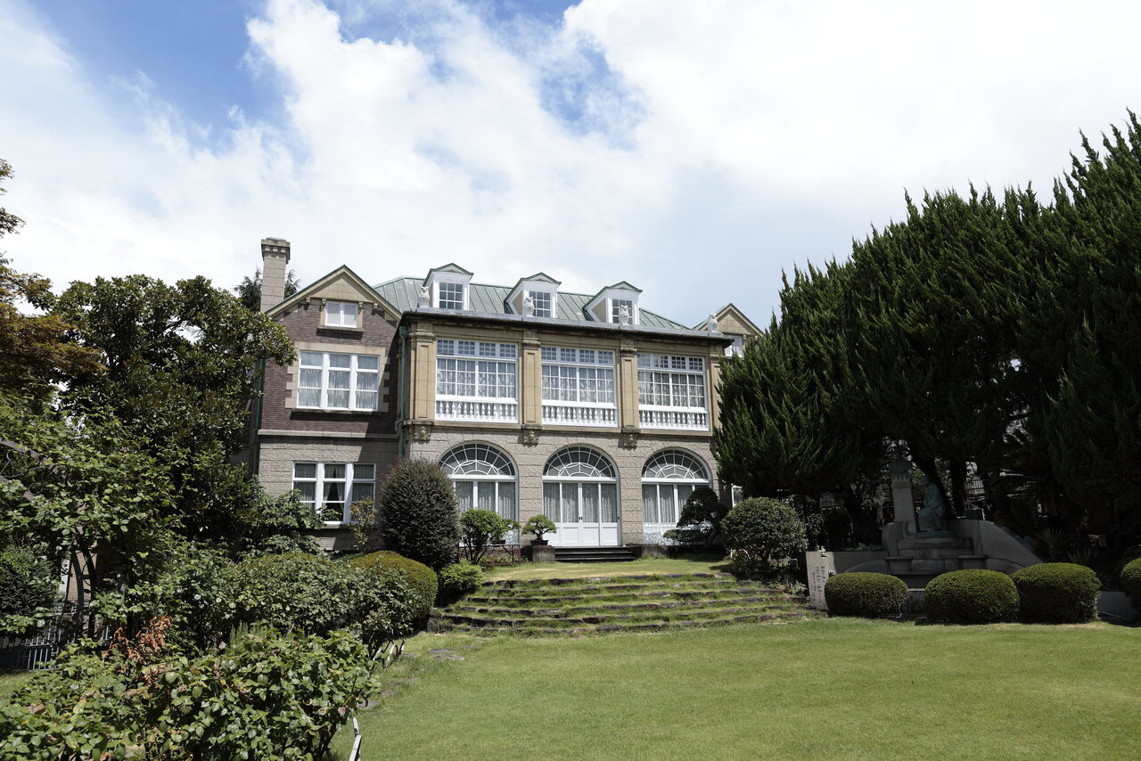 大正・昭和初期を代表する建築家である岡田信一郎氏が設計した、当時としては珍しい鉄筋コンクリート造りの洋館は、アダムスタイルの応接室やイギリスの邸宅を思わせる外観など当時の姿をそのまま残す、歴史的にも重要な建造物です。美しい英国風の庭園は、東京の中心部にありながらも豊かな自然を残し、その緑の環境も非常に貴重なものです。