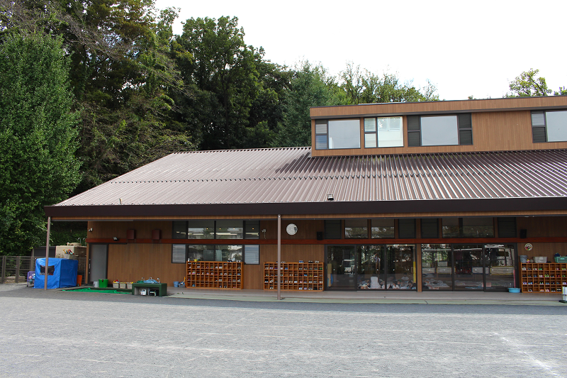 2021年に増改築された園舎は、大きな窓から光をたっぷり取り入れる設計で、印象的な屋根のデザインが特徴的です。