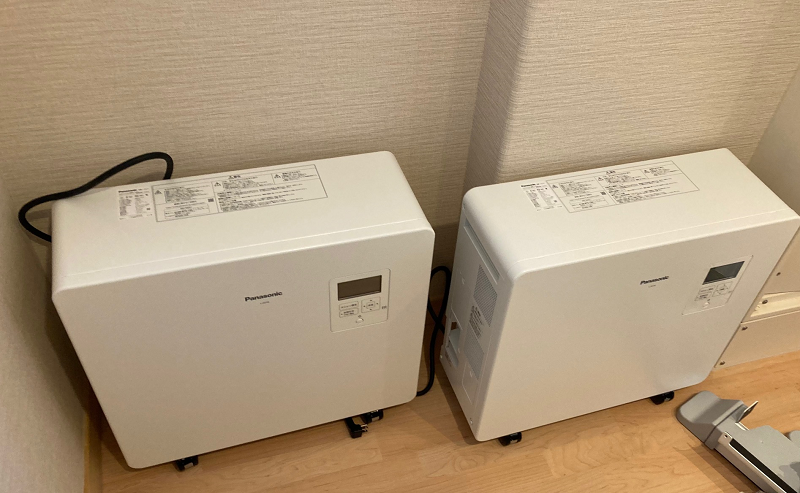 蓄電池(Panasonic LJSF35※)は分電盤ボックスにつながれており、停電時には自動的に電気が供給される