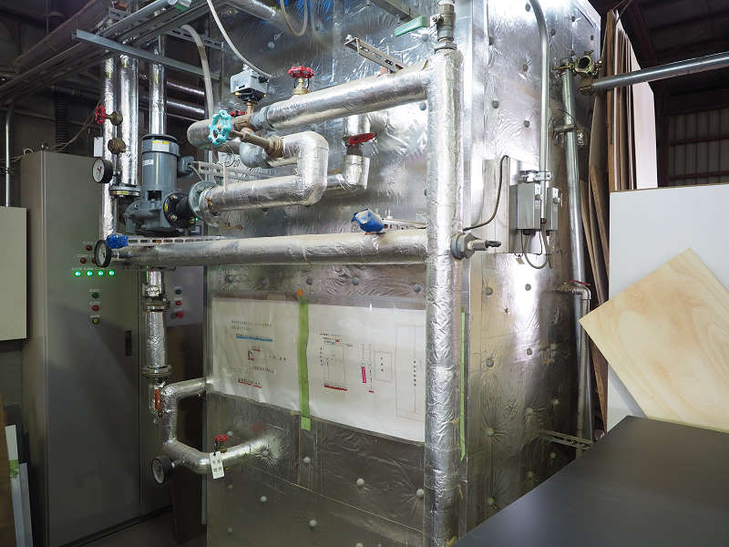 サクセス工業様は、LEDや最新式コンプレッサーの導入など、省エネ・脱炭素に繋がる施策を次々と実施しています。なかでも、脱炭素に大きく貢献しているのが、工場の廃材を利用した暖房システムです。生産工程で余った端材や、集塵機で集めた木くずを焼却炉で燃やし、その熱で湧かしたお湯を循環させて工場全体を暖めています。
