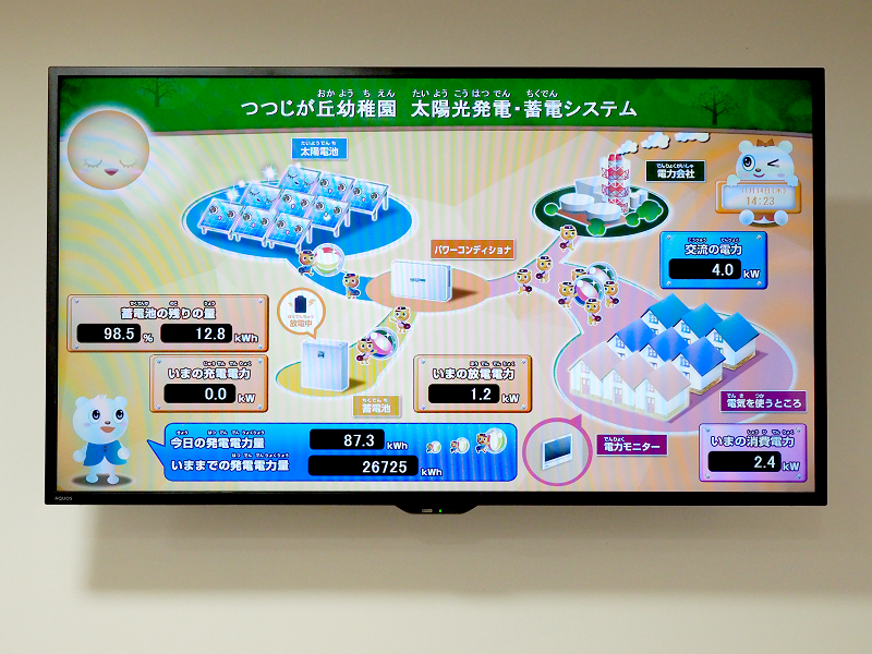 発電と蓄電の状況は、園の入口近くに接地されたモニターでいつでも確認できる