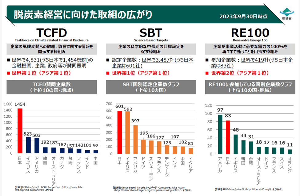 日本の多くの企業がこれらのイニシアチブに取り組んでおり、その数は世界トップクラスになっています。