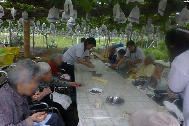 筑波山や加波山を臨む自然豊かな丘陵地に立地し、周辺には田んぼや畑が多い。「近くの農家にご協力をいただいて、ブドウ狩りやイチゴ狩り、柿の収穫をするなど地域ならではのレクリエーションを催しています。ただ、今は新型コロナウィルスの影響で、一部のイベントを自粛しなくてはならないのが残念ですね」と森田事務長は話してくれた。