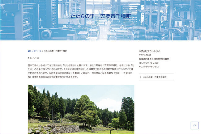 「たたらの里」の歴史の魅力も自社ホームページから発信