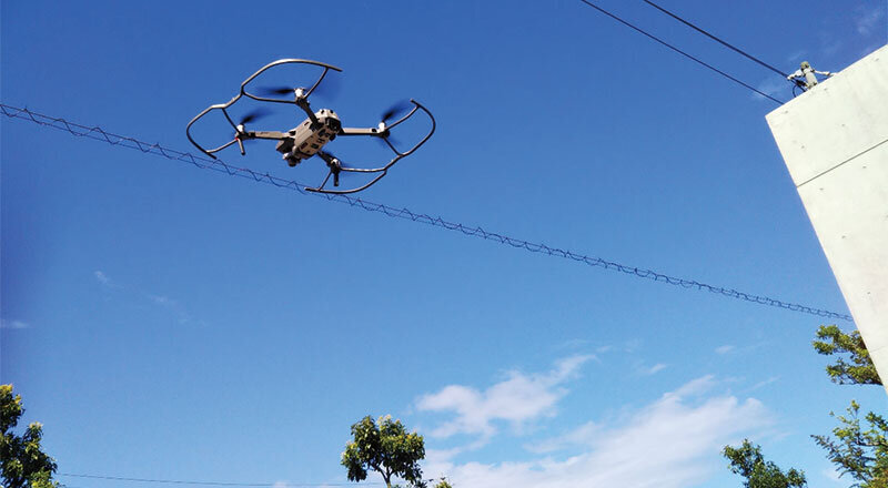 新しい技術を積極的に取り入れる中で、事業の新しい可能性を開く技術として目下注目しているのが、ドローンだ。「ドローンの技術に詳しい知り合いを通じて、以前から関心を持っていました。情報を集めて研究し、機が熟してきたので、お客様の役に立てながら活用のノウハウを蓄積しようと第一歩を踏み出すことにしました」と谷口専務。