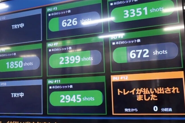 射出成形機や加工機などの稼働状況がひと目でわかるモニター。スマホでもチェックできる