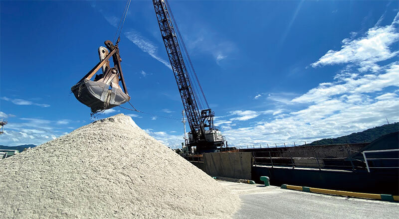 香川県西部の三豊市に本社を置く株式会社小西興発は、研磨材やガラスの原料として使用される珪砂(けいしゃ)を中心に水道の最終工程で使用する濾過(ろか)材、ゴルフ場のグリーンやバンカー向けの砂、コンクリートやモルタルに混合される建材用素材の調達、販売を手掛けている。(TOP写真:港で積み上げられている珪砂)
