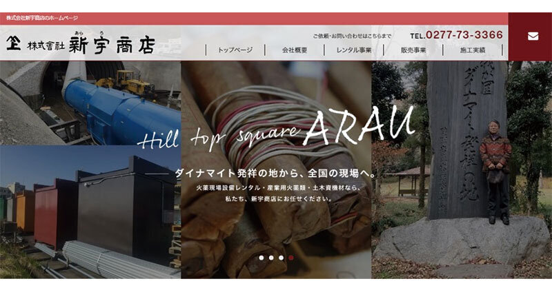 2023年5月、株式会社新宇(あらう)商店の新しいホームページがオープンした。新井規夫代表取締役が始めた火薬現場設備レンタル事業を前面に押し出し、同事業にかける意気込みが伝わる内容となった。とくに、同社が独自開発し、特許も取得した移動式エアコンパッケージについて詳述している。新たに、スマートフォンでの表示にも対応できるようにした。