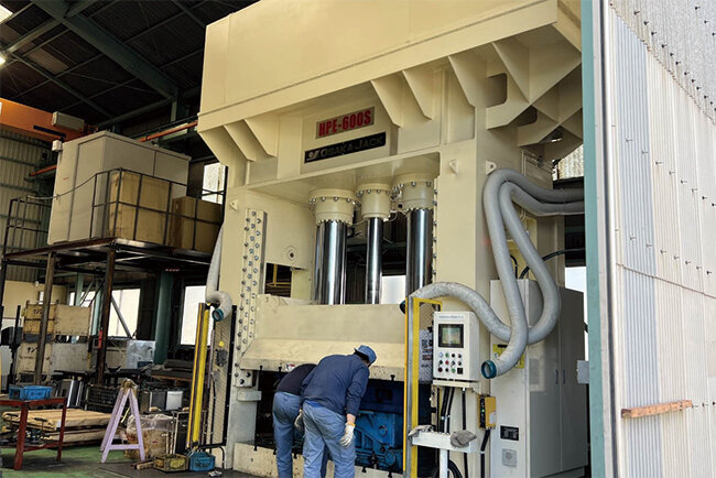 同社の強みである「深絞り」で建設機械の大型部品を成形する