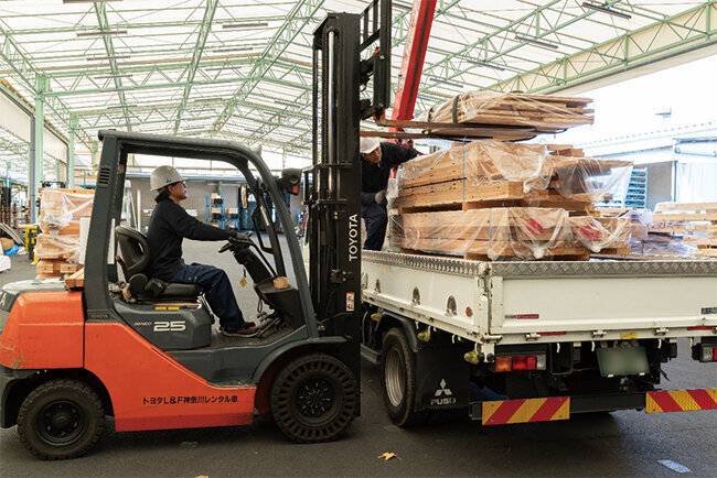 物流センターに建材を集積し、必要に応じて現場に配送する