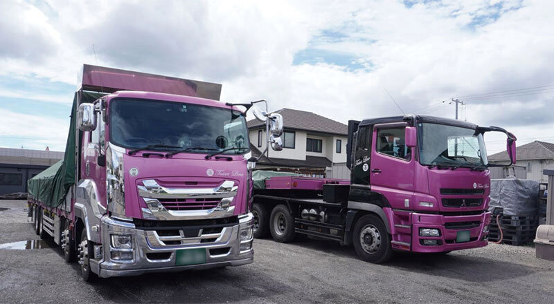 岡田社長は、会社員時代の経験と人脈を活用しながら取引先を開拓し、足元を固めた上で車両を増やすというスタイルで事業を拡大していった。コーポレートアイデンティティの設定にも気を配っている。力強さや落ち着いたイメージを発信するためにコーポレートカラーは黒にする一方、公道を走る車両の色は、見る人にソフトな印象を抱いてもらえるようメタリックピンクにしている。「堅実さだけでなくスタイリッシュさも打ち出すことで従来の運送会社のイメージを変えたいと思っているんです」と岡田社長は明るい表情で話した。