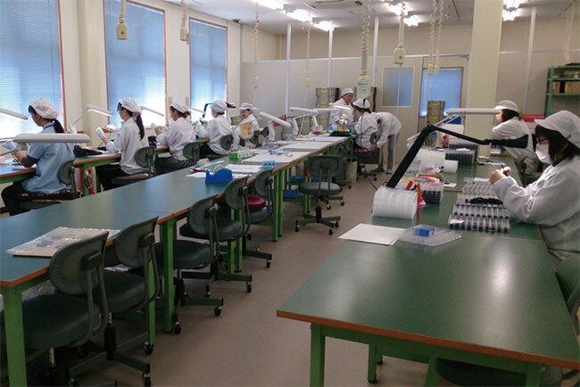 組立・検品作業に従事するのは100%女性スタッフ。きめ細やかで忍耐強い女性の特質が最大限に発揮されているという