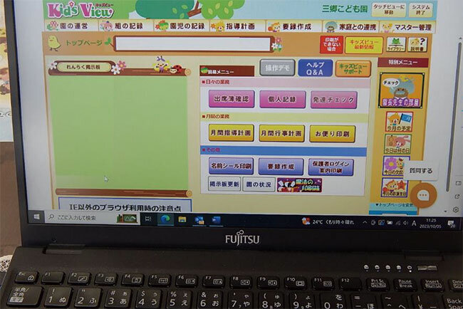 ただ、こども園の職員の仕事は保育だけでなく、園児の出欠管理、保育の様子を保護者に伝えるほか、各種イベントの案内、園内のお知らせ掲示など多様だ。そこで同園は業務量や園児の増加に対応し、これまでの紙を使用した業務から、本格的なICT化に乗り出した。