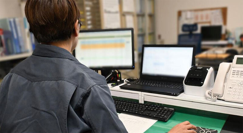 様々な得意先からの受注を整理し、どの機械でいつまでに完成させるか、もちろんわずかの誤差も許されない精度の仕事を着実にこなしてゆく。想像するだけでも気が遠くなるような仕事だが、営業を引き受ける社長を支え、誠実に仕事を進めてくれる従業員とお互いを信じて任せられる環境。ここにも「人を大切に」の精神が貫かれていると言える。