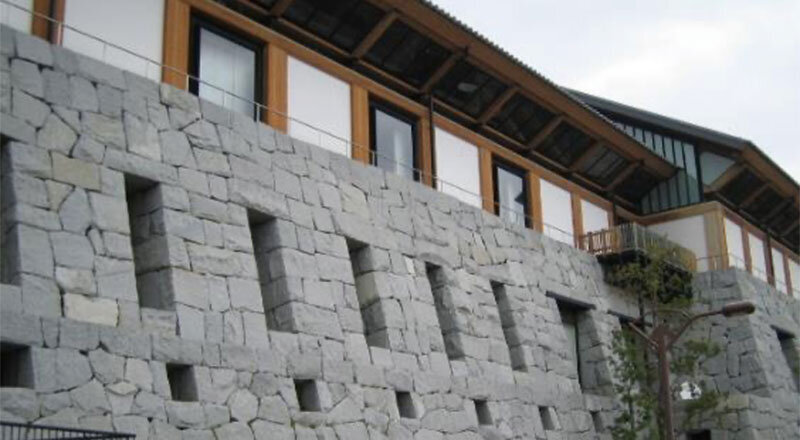 「石への思いは、企業としての背骨となっています」。専務取締役の母倉(ぼそう)雅孝さんが話す。髙尾石材は1973年、石材加工会社で働いていた髙尾勝泰(かつひろ)さんが独立して、墓の巻石、ビルの壁石などをつくる石材加工会社を設立したのがはじまりだ。意欲に燃え、イタリア、ドイツの最新機械を備えた新工場を開設したが、タイミング悪く、バブル経済の崩壊期に直面、中国産の安価な石材も輸入されるようになり、業績を圧迫した。専務だった長男、晋(しん)さんが石材の加工販売だけでなく、販路開拓をねらって自ら建設工事を請け負う石工事を始めたが、その晋さんがまもなく急死、苦難は続く。その後、次男の現代表取締役、豪(つよし)さんが石工事事業を継承するとともに、創業者、勝泰さんの義弟にあたる母倉専務が新規分野として土木建設事業を手掛け、徐々に経営を安定へ導いていった。