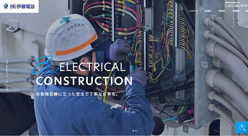 群馬県高崎市を拠点に、工場や施設などの事業所に電気を供給する幹線工事や動力設備工事を請け負っている会社が株式会社伊藤電設だ。個人事業主として工事に携わってきた代表取締役の伊藤法之氏が、2017年に法人化して設立した。従業員を雇い業容を拡大していく中で取り扱う案件も増えていき、見積書の作成などに大きく時間を取られることになったことから、工事原価管理システムを導入して業務の効率化を実現した。(TOP写真:個人事業主から株式会社となり整備したホームページのトップ画面)
