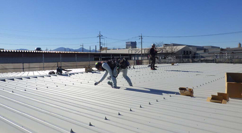 創新建設株式会社は、群馬県高崎市に本拠を置く建設会社だ。事業の主体は設立以来積み重ねてきた通信大手などが県内で発注する事業所、施設などのリニューアル工事で、その実績から発注元の高い信頼を得ている。主な業務は受注した工事の施工を協力会社に振り分ける現場管理にあり、現場に立ち会うことが絶対条件となる。このため、関口琢真代表取締役社長がほぼ1人で現場管理をこなし、帰社後に取り掛かる事務作業で残業も発生する。この課題克服に向け、クラウドサービスなどデジタルツールを積極活用すると同時に、強みとする小回りの利く機動力にも磨きをかける。(二重屋根設置状況)
