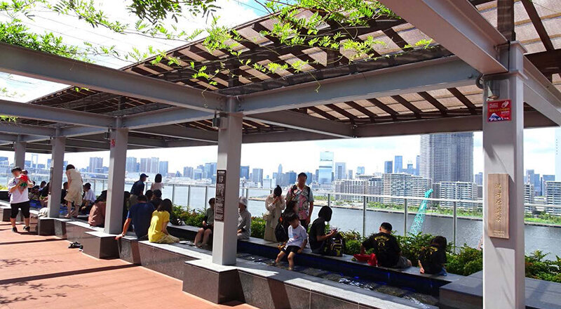 東京湾を一望できる無料の展望足湯「千客万来足湯庭園」(TOP写真参照)は、地域住民からの要望もあり、夜景も楽しめる時間帯に利用時間を延長した。地域に根差した施設として存在感を高めつつあるようだ。
