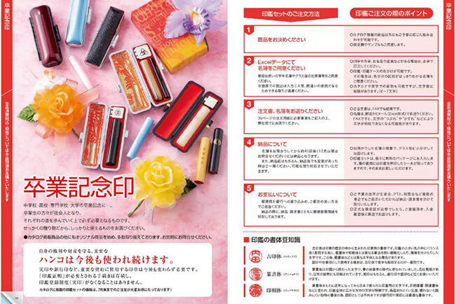 卒業記念の印鑑作成を呼びかける電子カタログのページ