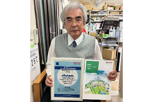 「リコー再エネ電力供給証明書」を持つ小宮山社長