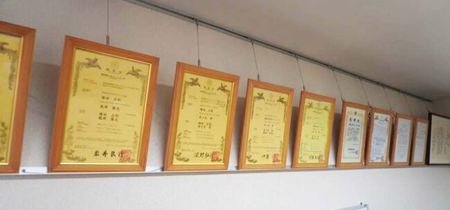 本社に飾っているJ-クレジット購入契約締結と「J-クレジットとっとりの森を守る優良企業」の認定証
