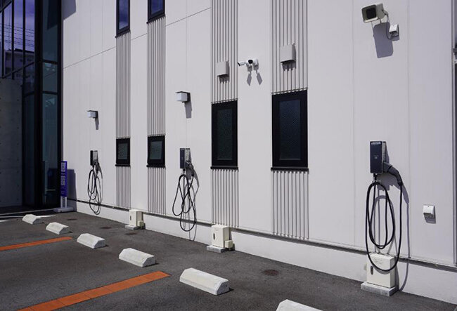 新社屋は省エネ効果の高いネットゼロエネルギービル 屋上には144枚の太陽光パネルを設置 駐車場は電気自動車の充電スペースを設置