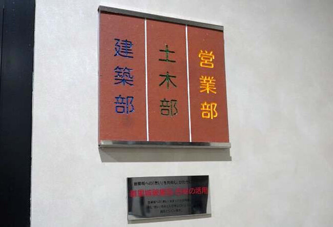 首里城の破損石材などを活用した社屋内の案内板
