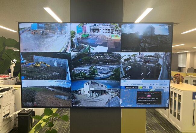 オフィスに設置した遠隔で安全管理を行うための大型モニター
