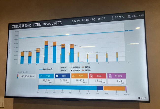ネットゼロエネルギービル(ZEB Ready)の見える化(3階エントランス部分)