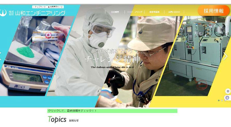 株式会社山和エンヂニアリングは群馬県高崎市を本拠に、さまざまな業種の工場生産設備について企画立案から設計、製作、試運転、現地据付までの一連の作業を、50年超の歴史の中で、一貫して自社完結型で展開してきたエンジニアリング会社だ。他方、独自開発した粉砕機で野菜や果物などの天然素材を微粒子状にし、薬品や食品などのメーカーに原材料を供給する粉体事業も手掛ける、業態の異なる〝二枚看板〟を備えた異色企業だ。(TOP写真:新卒採用に向け採用情報を設けてリニューアルした山和エンヂニアリングのホームページ)