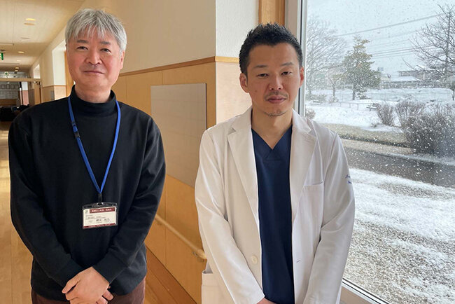 野村祐介理事長(右)と櫻井利浩事務部主任(左)。櫻井氏も野村病院の理念に共感し自ら応募した一人