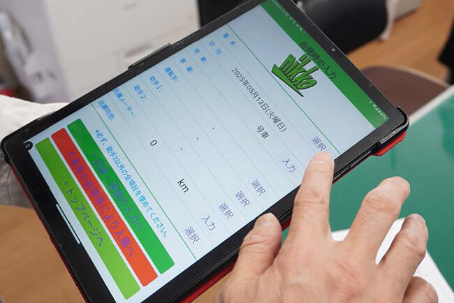 SDGsと親和性が高いペーパーレス化や労働時間の短縮につながる業務効率化の一環として、日光産業が注力しているのがデジタル技術の活用だ。自社専用の日報管理システムと連動した日報作成システムを開発し、2023年7月から日報作成業務のデジタル化を実現している。各収集車の担当者が、タブレット端末を使ってごみ回収の各現場で到着時間や発車時間などの記録を行うと、その内容がそのまま本社のシステムに反映できるようにしている。