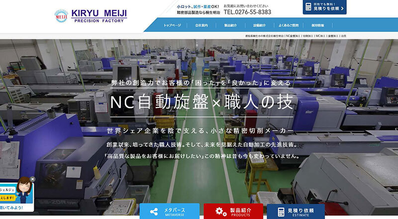 ホームページを巡っては、ある大手医療機器メーカーが「実はこういった部品で困っている。そちらで作れますか」と問い合わせフォームに書き込んできて、これをきっかけに最終的に商談が成立したといった逸話もある。桐生明治の直接受注への糸口は、展示会やホームページを介して接触のあった企業に工場を視察してもらい、サンプルの提供で取引につなげている。メタバースのページの追加によって、情報提供型から体験型のアプローチが可能になり、直接受注、あるいは求人への糸口がさらに広がることが期待される。