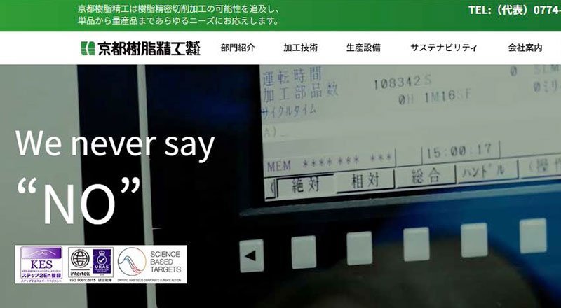 合成樹脂の分野で蓄積した加工技術を武器に、積極的な事業展開を図る企業が京都府にある。設立から60年近い歴史を持つ京都樹脂精工株式会社だ。接着、曲げ、溶接、研磨、染色の高度な加工技術を備え、樹脂製品の設計から製造、納品まで一気通貫で対応可能な体制を構築している。企業成長の覚悟としてホームページのTOPに「We never say “NO”」と宣言。そのため、多種多様な工作機械と熟練した職人の技を融合した加工能力のポテンシャルを高め、その技術を支援するためにCADの徹底活用、AIを活用して見積り精度を大幅アップ等、常に最新のデジタル技術を活用して、更に進化させようとしている。(TOP写真:京都樹脂精工のホームページ)