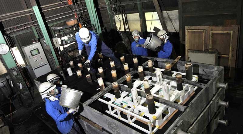 アルミ合金のインゴットを溶かすガス炉=本社工場