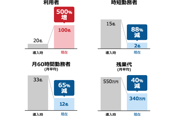 「中でも15人いた時短勤務者が2人に減ったことが大きいですね。時短勤務では給与が減るだけでなく、キャリアアップに対する不安も生じます。それがテレワーク制度の導入により、育児や介護に取り組みながら、安心して仕事を続けられるようになりました」