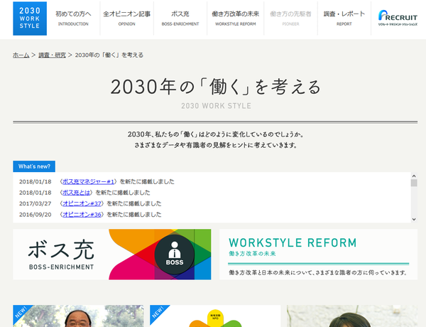 株式会社リクルートマネジメントソリューションズは、2018年1月22日、サイト「2030年の『働く』を考える」のリニューアルを行ったと発表した。