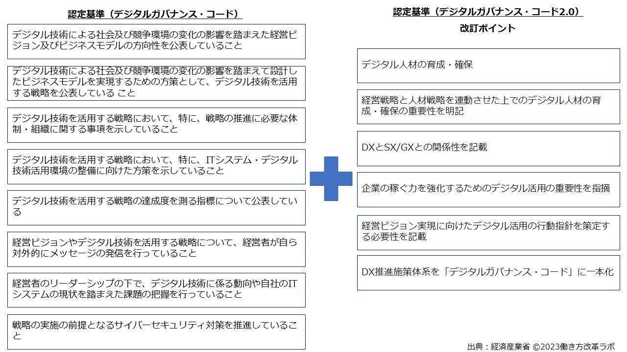 デジタルガバナンス・コードの基本的事項に対応することがDX認定を受ける条件でしたが、デジタルガバナンス・コードの改訂により「デジタル人材の育成・確保」が追加されました。