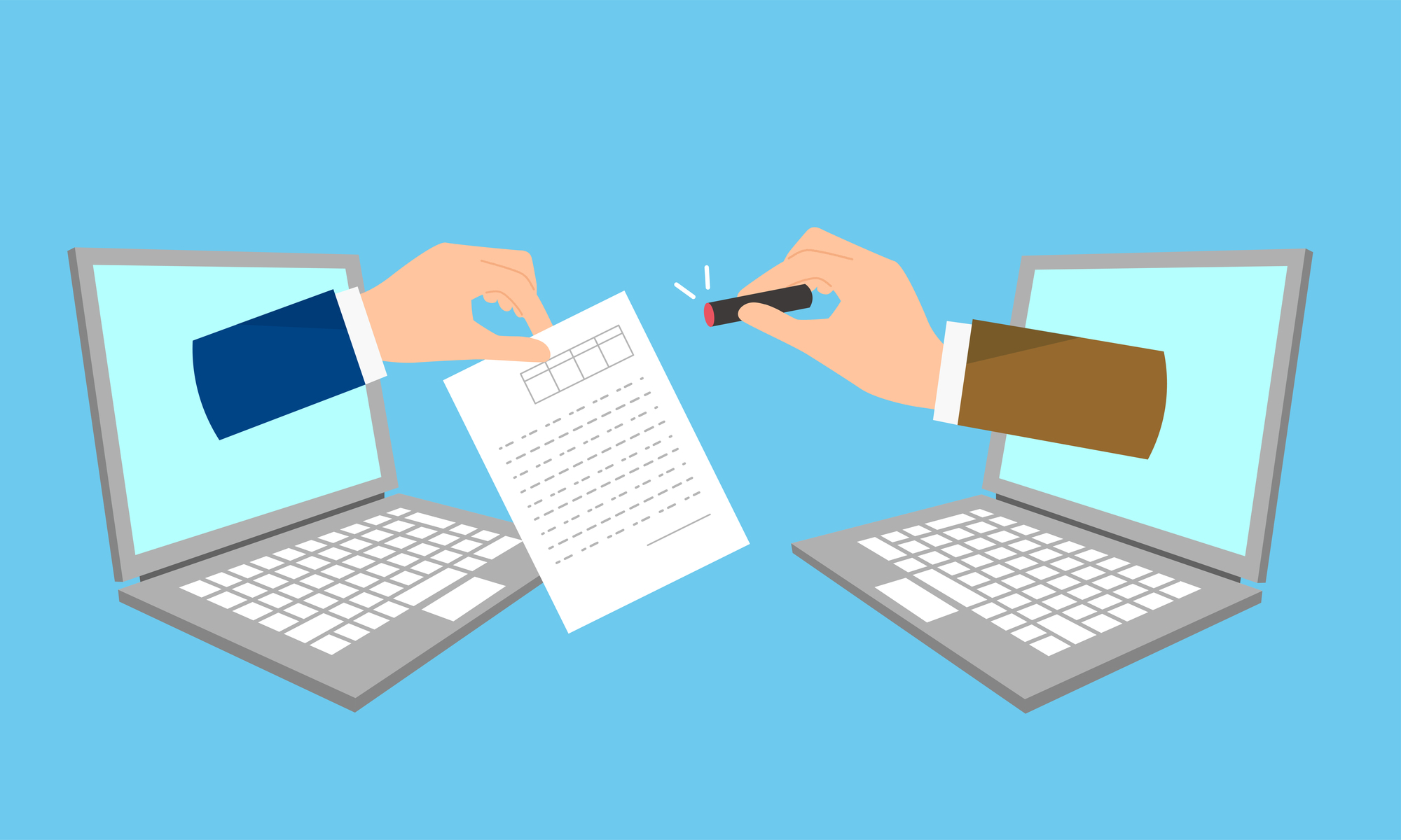 電子契約とは、取引先との間で書面によって行われていた契約を、インターネット上で交わす方法です。電子データ上で電子署名を行うことで、書面の契約書での押印と同様に、双方の合意の証として残すことができます。