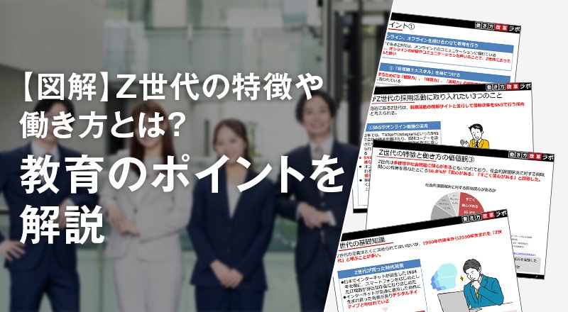 働き方改革ラボの人気記事『【図解】Z世代の特徴や働き方とは? 教育のポイントを解説』の内容をわかりやすい資料にまとめました。無料でダウンロードできますので、是非お手元でご確認ください。