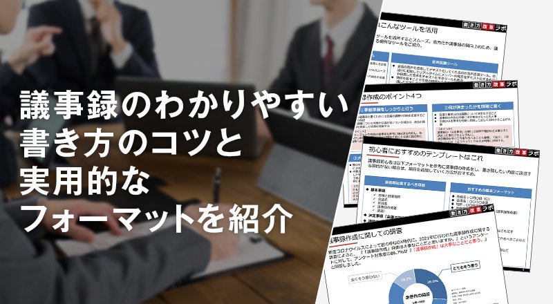 今回は、わかりやすい議事録を作成する上で基本となるフォーマットと、その活用方法について解説します。議事録を作成するコツや、効率的な作成に役立つツールもあわせて紹介していますので、ぜひ参考にしてください。