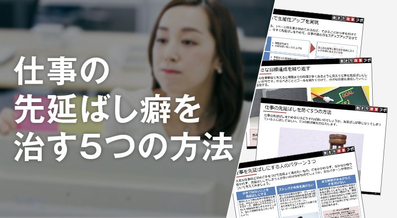 良くない習慣と知りつつも、ついやめられない仕事の先延ばし。やるべきことを後回しにしているうちに期限が近づいて焦ったという経験がある人も多いのでは。仕事の先延ばしは、締め切り前の残業や深夜労働を余儀なくされ、健康や精神に不調をきたすこともあるため注意が必要です。今回は、先延ばしをやめられない人のために、仕事を後回しにしてしまう主な原因と、それを防ぐための方法を紹介します。