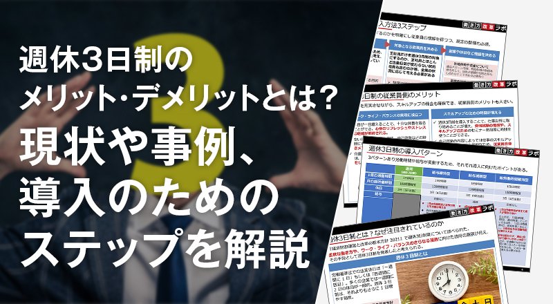 今回は、週休3日制の具体的な導入イメージや、会社側と従業員側にとっての週休3日制のメリット・デメリットについて解説します。あわせて導入事例も解説するので、ぜひご参照ください。