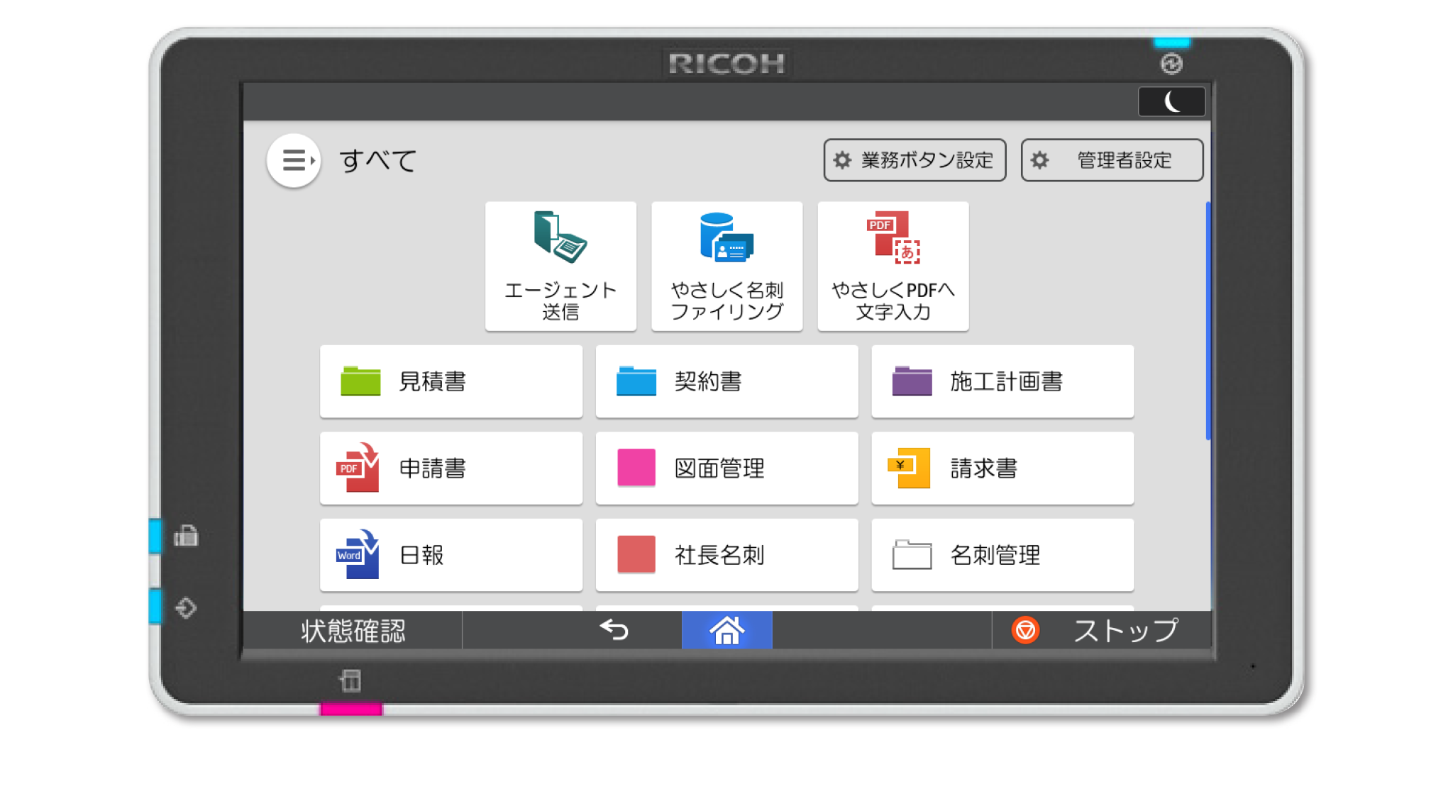 そんなオフィスのニーズを、複合機のタッチパネルで可能にするソリューションです。