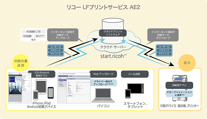 「リコー LFプリントサービス AE2」をご利用のお客様は、より高機能な後継商品「RICOH カンタンセキュアプリント for Cloud」に移行可能です。