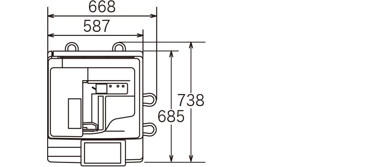 大きさ(幅×奥×高) 668×738×247㎜(転倒防止部材含む)