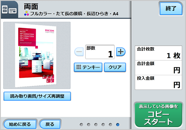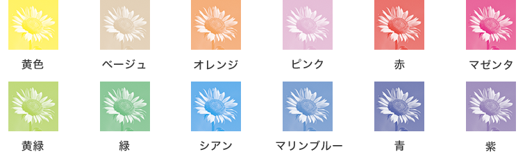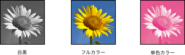 白黒、フルカラー、単色カラー(全12 色)から色を選択し、いろいろなコピー機能を使用できます。