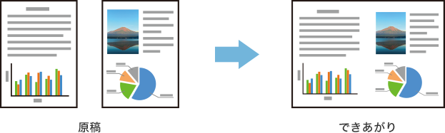 2枚の原稿を用紙の片面1枚にまとめてコピーできます。