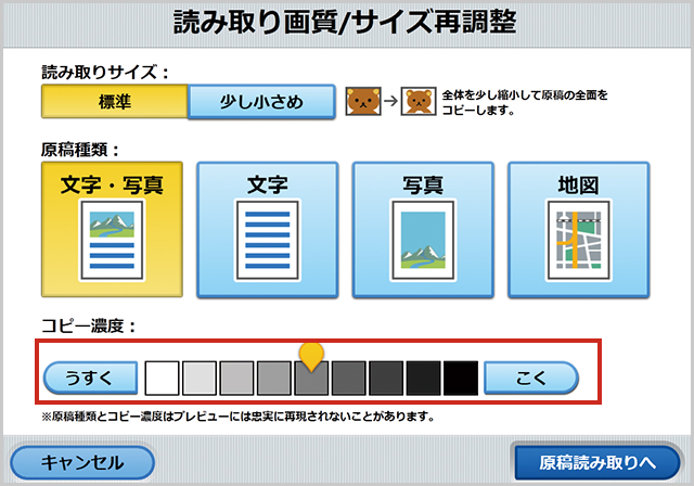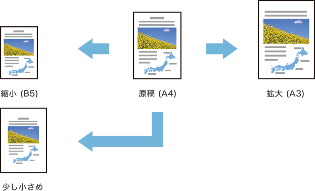 また、「少し小さめ」を選択すると原稿を少し縮小して原稿の全面をコピーできます。