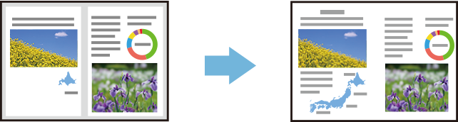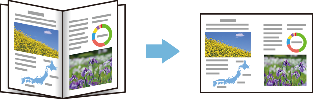見開きの左ページと右ページを1枚の用紙にコピーできます。